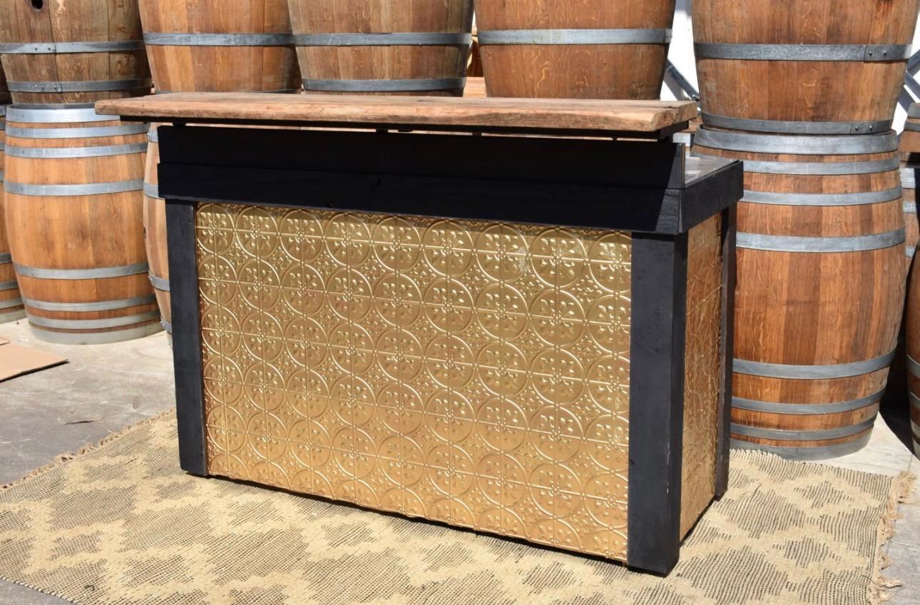 The Golden Rustic Bar features an elegant golden finish with a rustic design that adds a luxurious touch to any event setup. Ideal for weddings, parties, garden events, and cocktail areas, it serves as a stylish focal point for beverage service. Sturdy and visually appealing, this bar enhances the overall ambience while offering a functional serving space.
